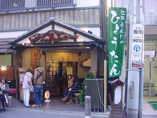 多くの観光客が集まる東京を代表する観光地、浅草・浅草寺の周辺にある「江戸もんじゃ」のお店。仲見世から少し入ったところにあって目立ちませんが、平日の午後でも行列が。浅草らしい雰囲気も味わえるので人気があるのでしょう。