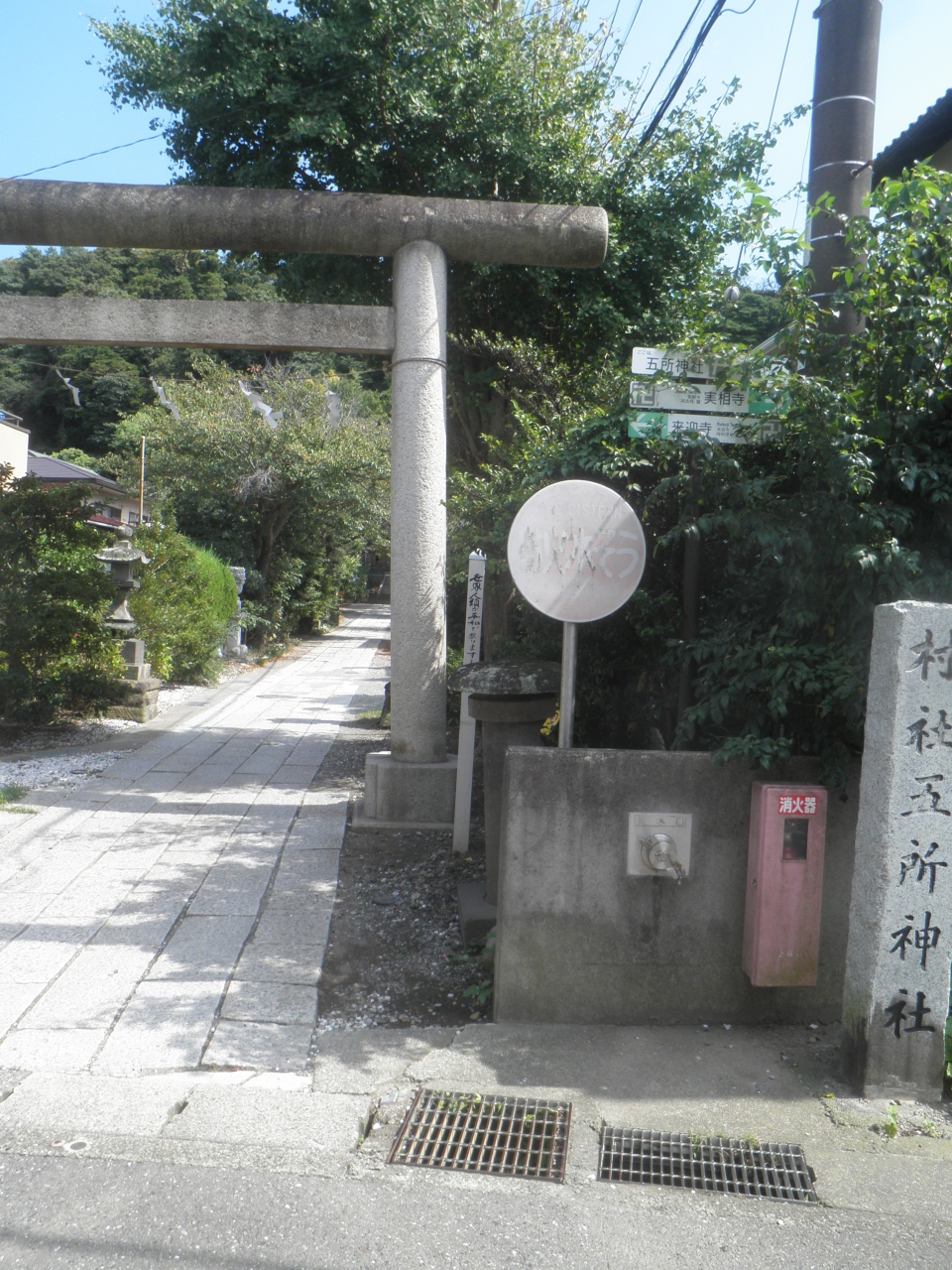 シルバーウィークに鎌倉を散策しました。 鶴岡八幡宮に参拝したあと、材木座海岸のほうに向かっていくと、寺院や神社が並んでいるところに五社神社があります。 石造りの鳥居をくぐると、本堂や稲荷神社などがあります。 周辺は住宅街で、ウェットスーツを着た若者が歩いていたり、鎌倉らしいところです。