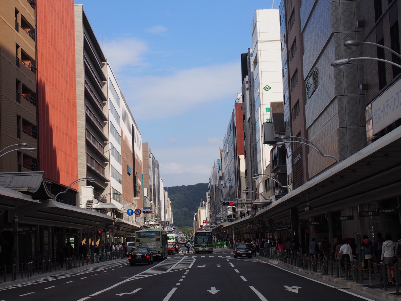 四条通は京都の中心部を東西に走る通りです。四条河原町から四条烏丸のあいだはおそらく京都でももっと人が歩いている通りです。通り沿いにはデパート、ファッション店、土産物店、老舗の京都の店などがあります。天井はアーケードになっているので天気が悪い日も安心です。