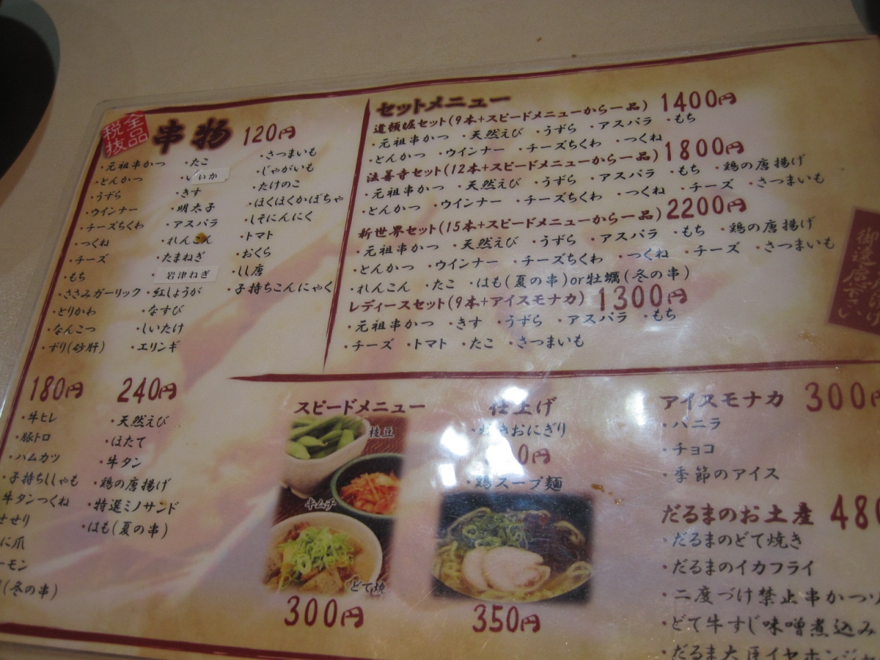 串カツは単品の他に数種類のセットメニューがあるので、選びやすいです。