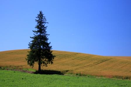美瑛の丘めぐりで「クリスマスツリーの木」に立ち寄りました。今年の2月にも訪れましたが雪景色も夏の景色も伊是れも見事で絵になります。2月は特に夕日が見事でしたが夏はどうか?とチェックしたかったのですが、この日の午後の便で帰宅する予定でしたのでできませんでした。