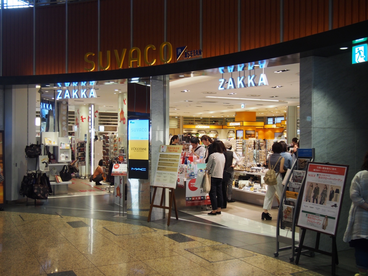 JR京都駅の西口改札近くにあるスバコ伊勢丹です。雑貨、コスメ、お土産類やコンビニのようにペットボトルの水、お茶、ビール類、お弁当、パンなどがそろっています。駅利用の際にいろいろと立ち寄ると便利な場所です。観光客も地元の方も利用しています。