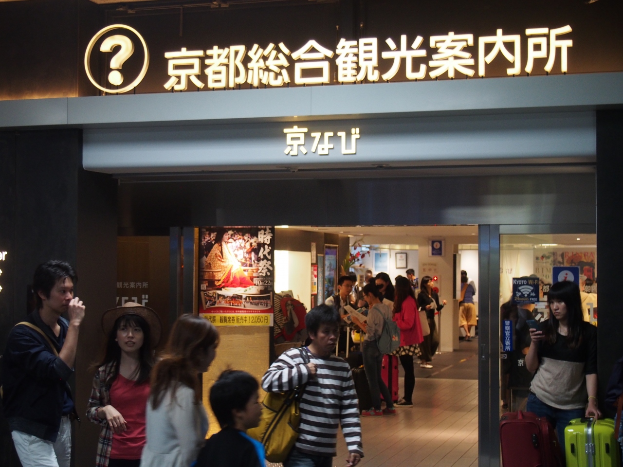 JR京都駅ビルの2階にある観光案内所です。入口に比べて奥行きがありなかなか広いスペースです。地図、パンフレットのたぐいがそろっていています。もちろん相談も可能です。外国人観光客も多く相談などに見えていました。