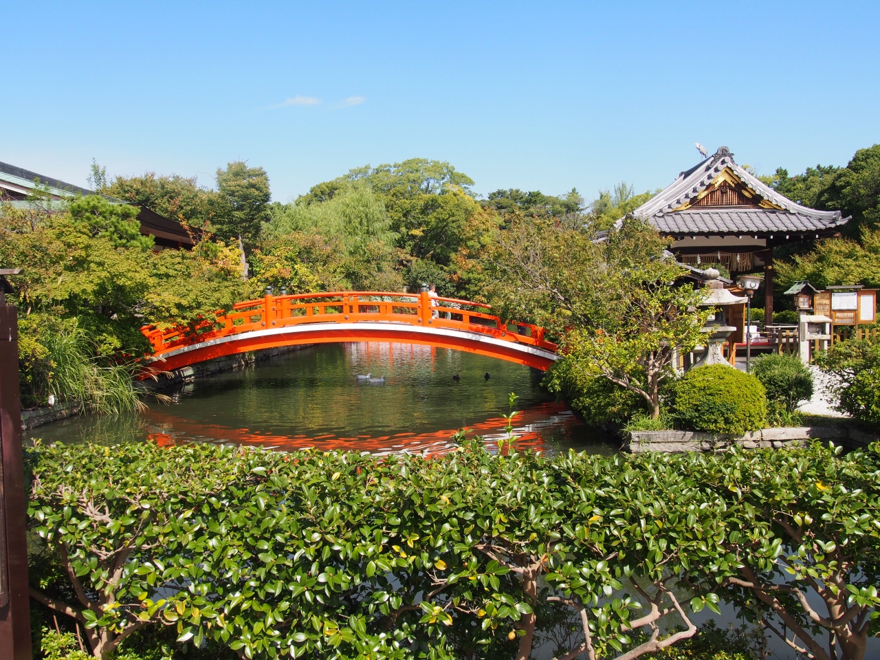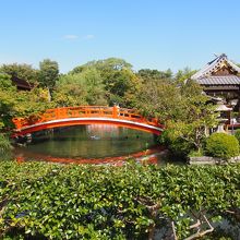 神泉苑は二条城の南側にあります。入口は南側からです。境内は中央部に大きな池があり真ん中に橋があり絵になる景観です。平安時代に皇室の遊覧用の池として造られたのが起源ということで歴史を感じます。苑内は訪れる人もなくゆったり歩けました。