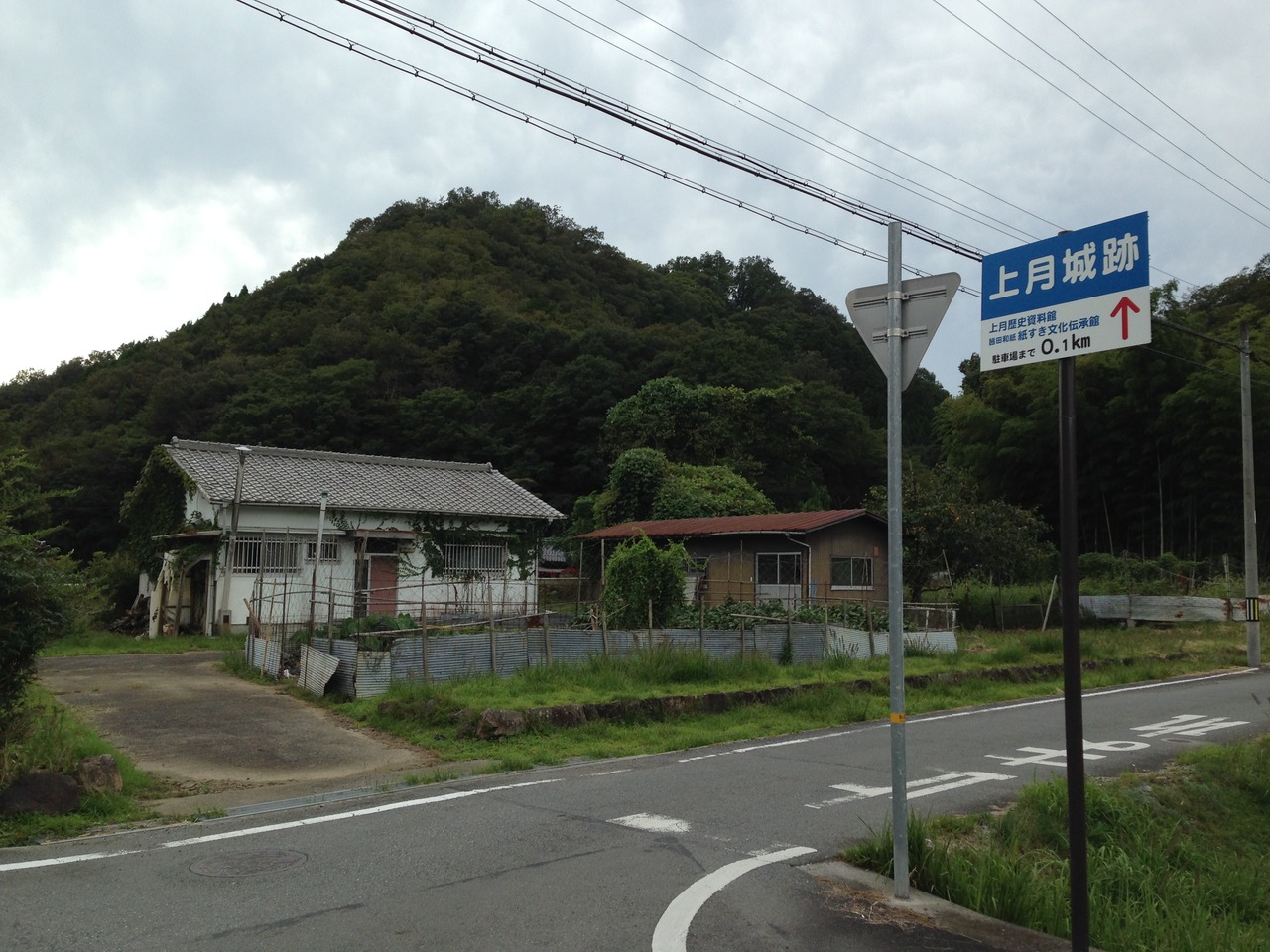 駐車場より約50m手前の道から、上月城跡の山を確認できる。
