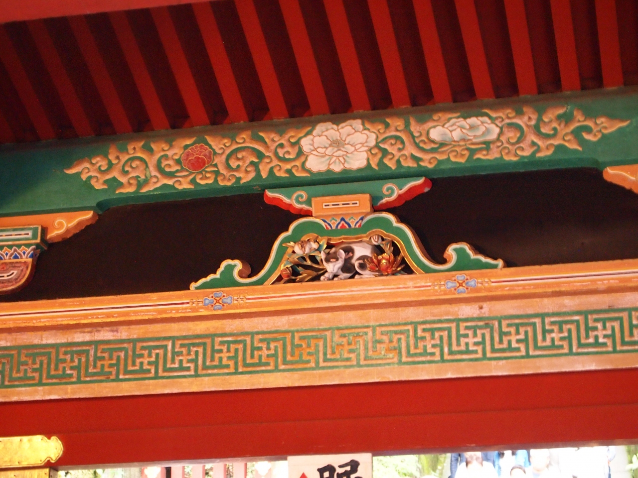 奥宮につながる階段の入口に矢印があり、そこに眠り猫がいます。