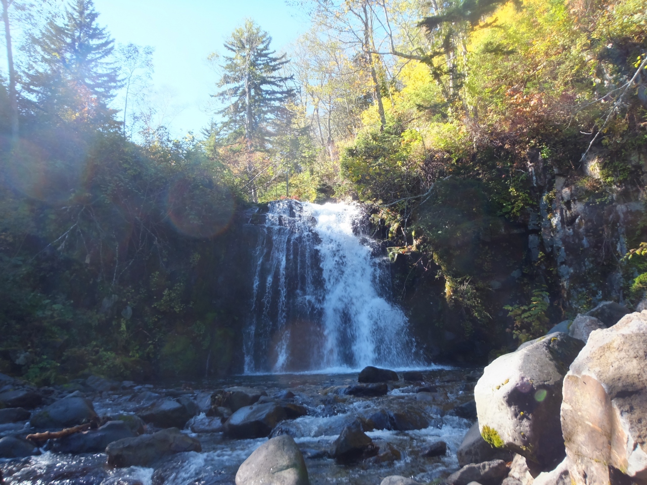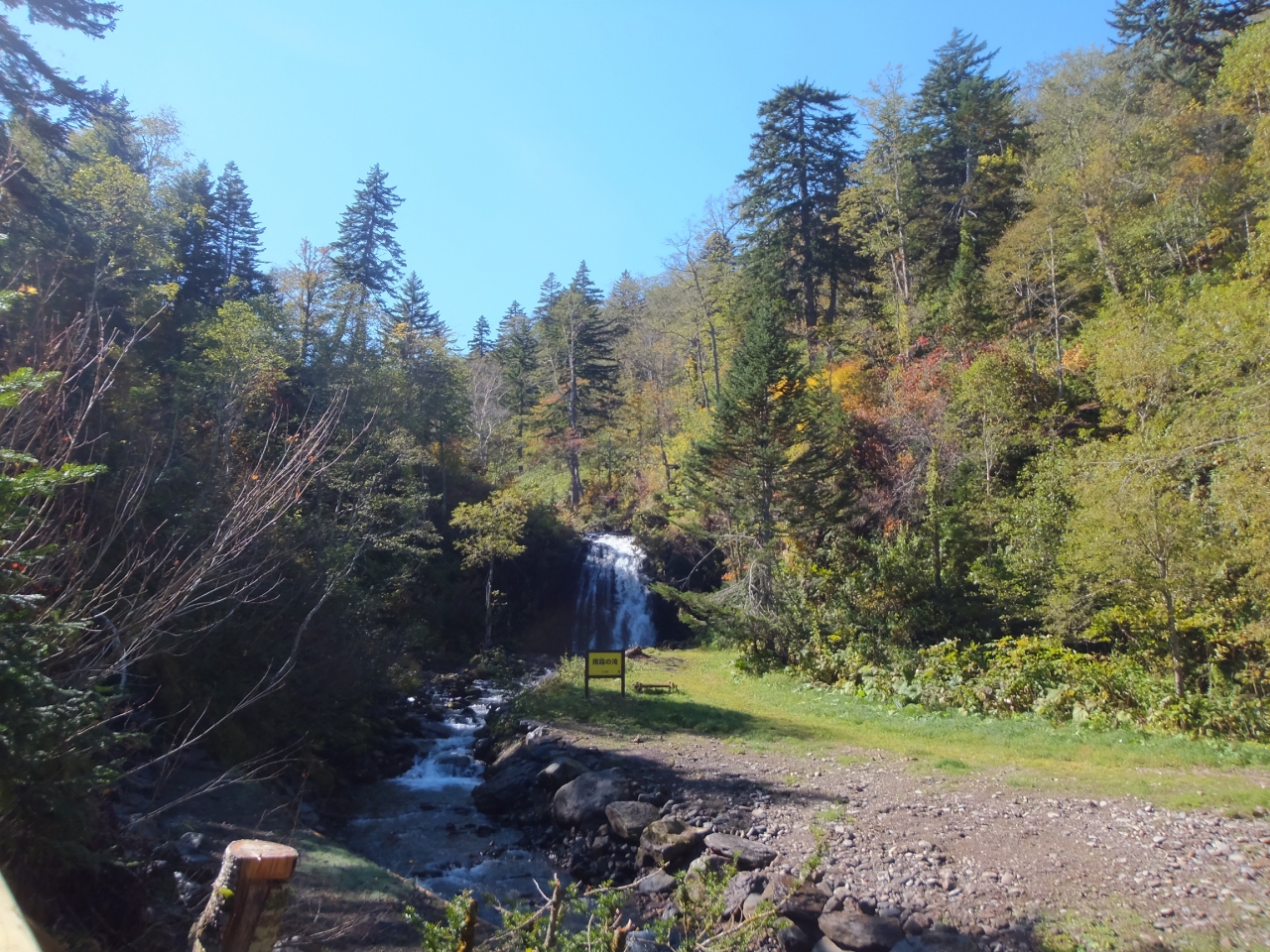 2015年の10月上旬では、紅(黄)葉は微妙にまだ早い感じがしましたが、草地が茶色に染まるだけの湿原よりは、木々に囲まれた滝の方が紅葉が映えると思います。