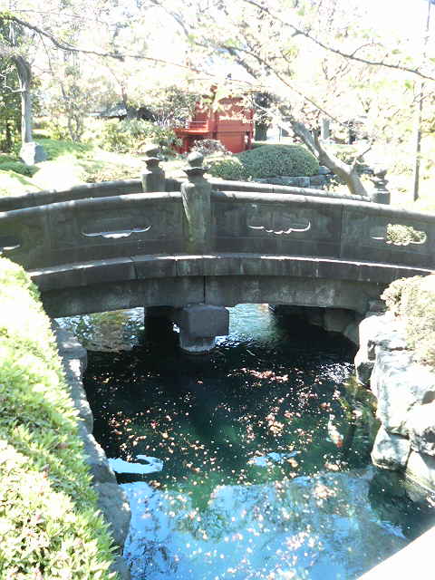 (現存する都内最古の橋だそうです。この時は4月で桜がまだ咲いてる時期で、橋の下の小川に散った花びらなどと合わせて風情ある風景を演出していました)