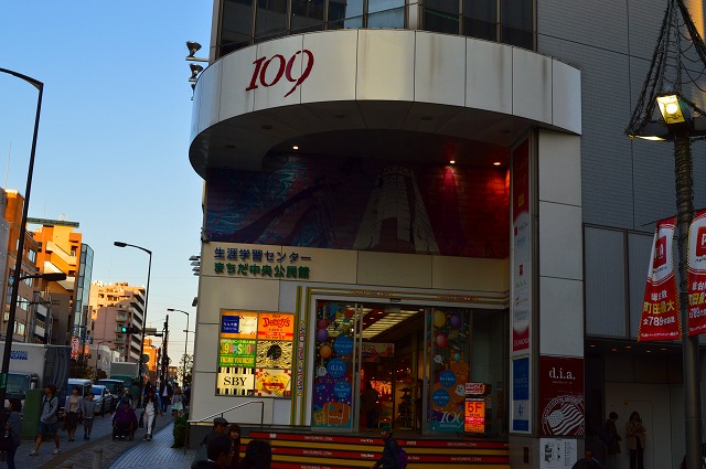 町田駅ツインズより先になりますが、109があります109とは「とーきゅー」つまり東急のビルですが、渋谷のような雰囲気ではなく、町田市の教育機関、生涯学習センターなどがある雑居ビルになっています。ファッションのメインは若者向けです。