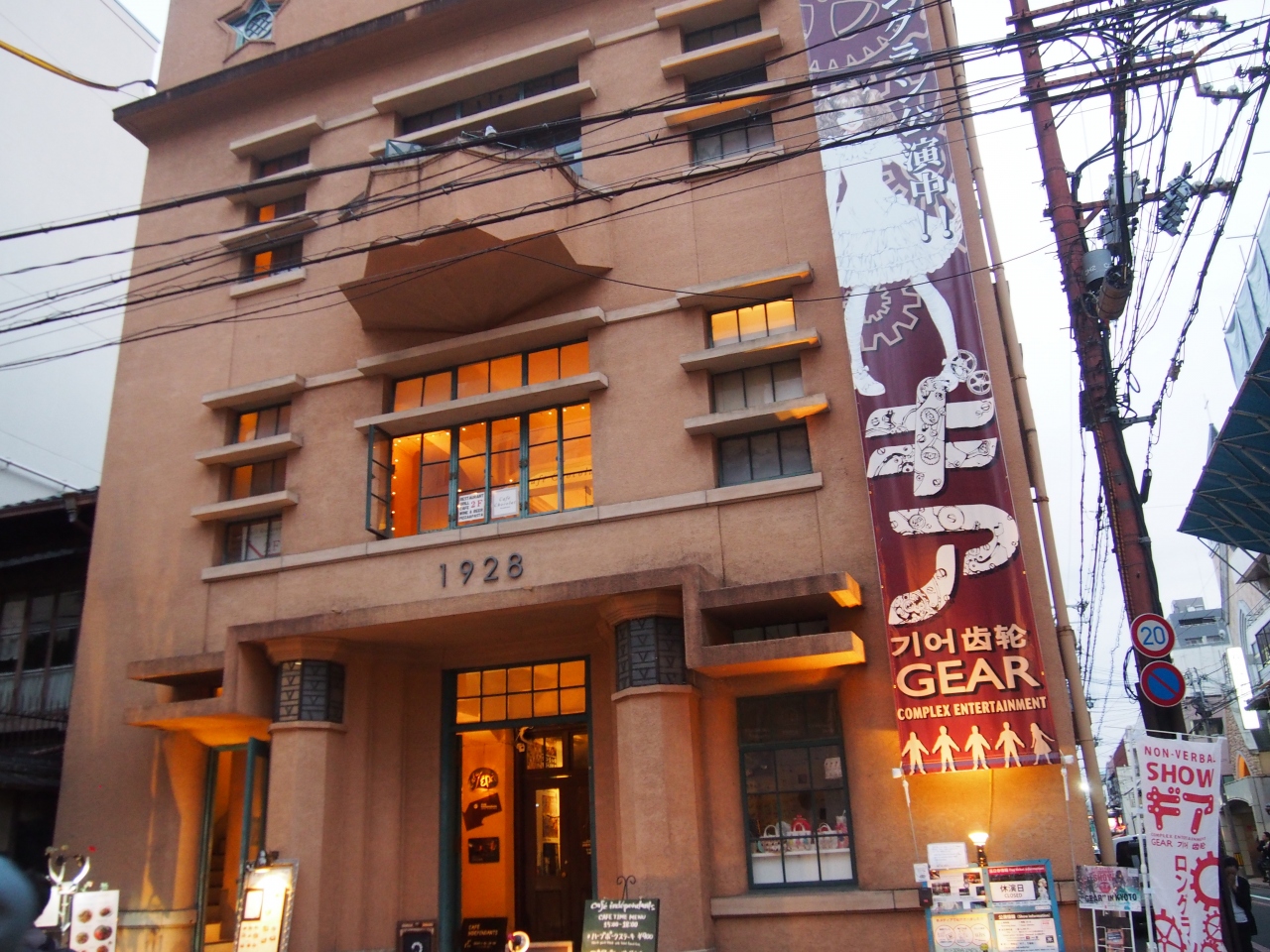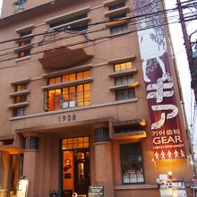 三条通りにある歴史的な建造物のひとつです。1928年に大阪毎日新聞京都支局として建設されたものです。時代的にアールデコの様式が取り入れられています。ビルの名前についているのは建設された1928年です。現在はギャラリー、演劇スペースなどとして使われています。
