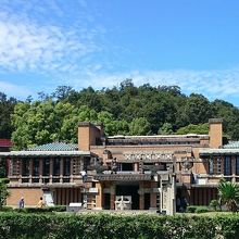 明治村5丁目にあり北口から入るとすぐに見える建物です。建築家フランク・ロイド・ライトが設計した建造物で、重厚な雰囲気が漂います。煉瓦と大谷石の幾何学模様のような作りなど見応えあります。中にはギフトショップとカフェがあります。
