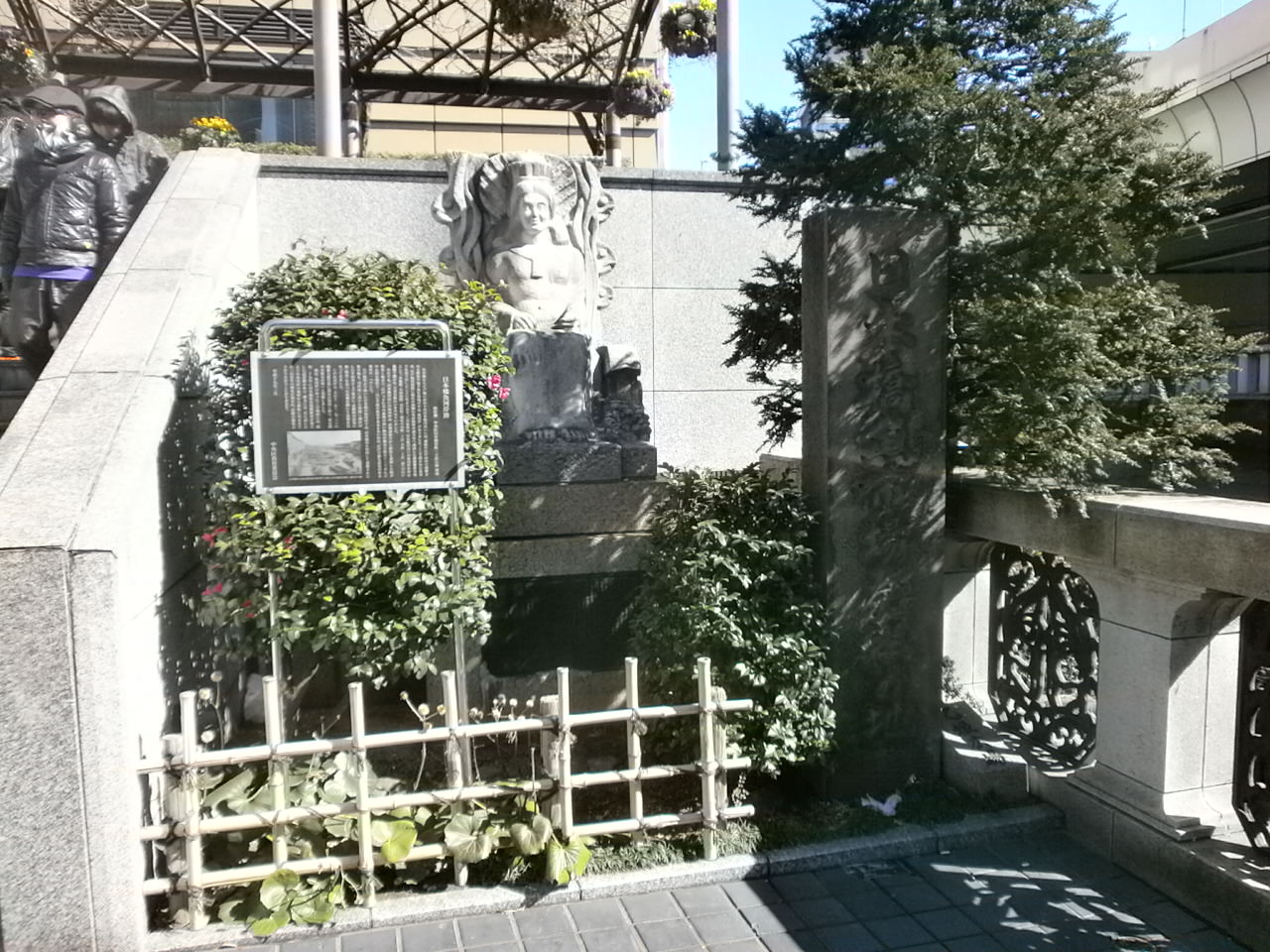 江戸時代には日本橋は商売の街として栄えていて、当時は魚河岸があったらしいです。現在の日本橋のたもとに、当時の名残の日本橋魚河岸記念碑があります。あまり大きな記念碑ではないので、注意深く観察しないと見過ごしてしまいます。