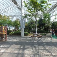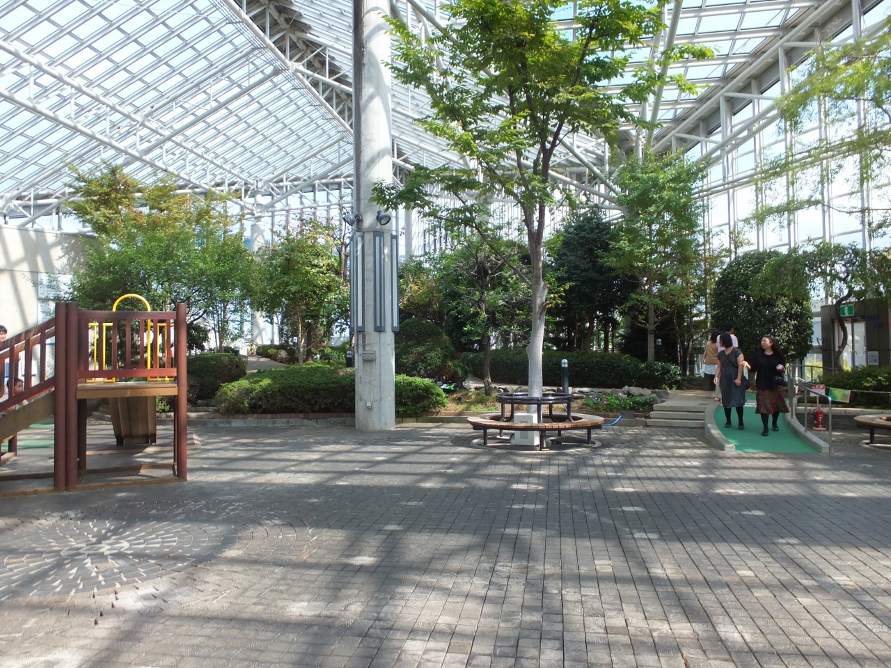 「秋田の自然をミニマムに表現した屋内緑地公園」だそうだが、はっきり言って意味がよくわからない。全面ガラス張りで空調もないので、夏場に入ると灼熱地獄である。子供の遊具らしきものがあったが、もうちょっと手入れとかなんとかしたほうがいいであろう。