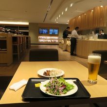 羽田空港国内線のサクララウンジには食事はありませんが、さすがに国際線のほうは食事が食べ放題でした。