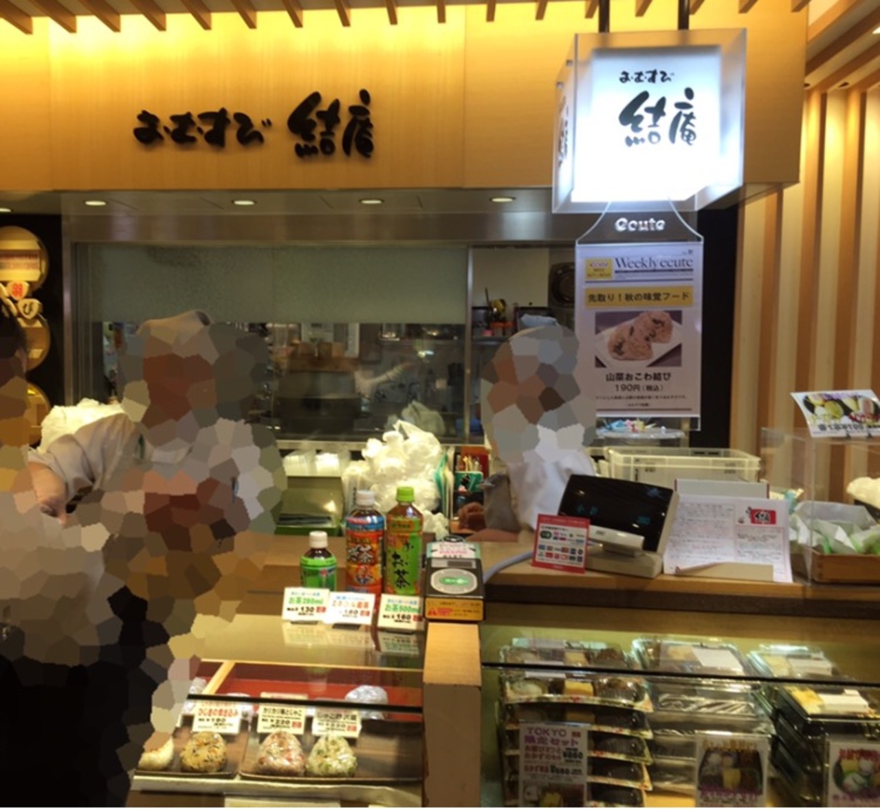 駅ナカのエキュートにあります。少しお腹が空いた時などに新幹線の中で食べたりします。こちらのは、お米が美味しいおむすびです。握り方もふんわりとしていて、コンビニおむすびとは比べようもありません。海苔は自分で巻きます。