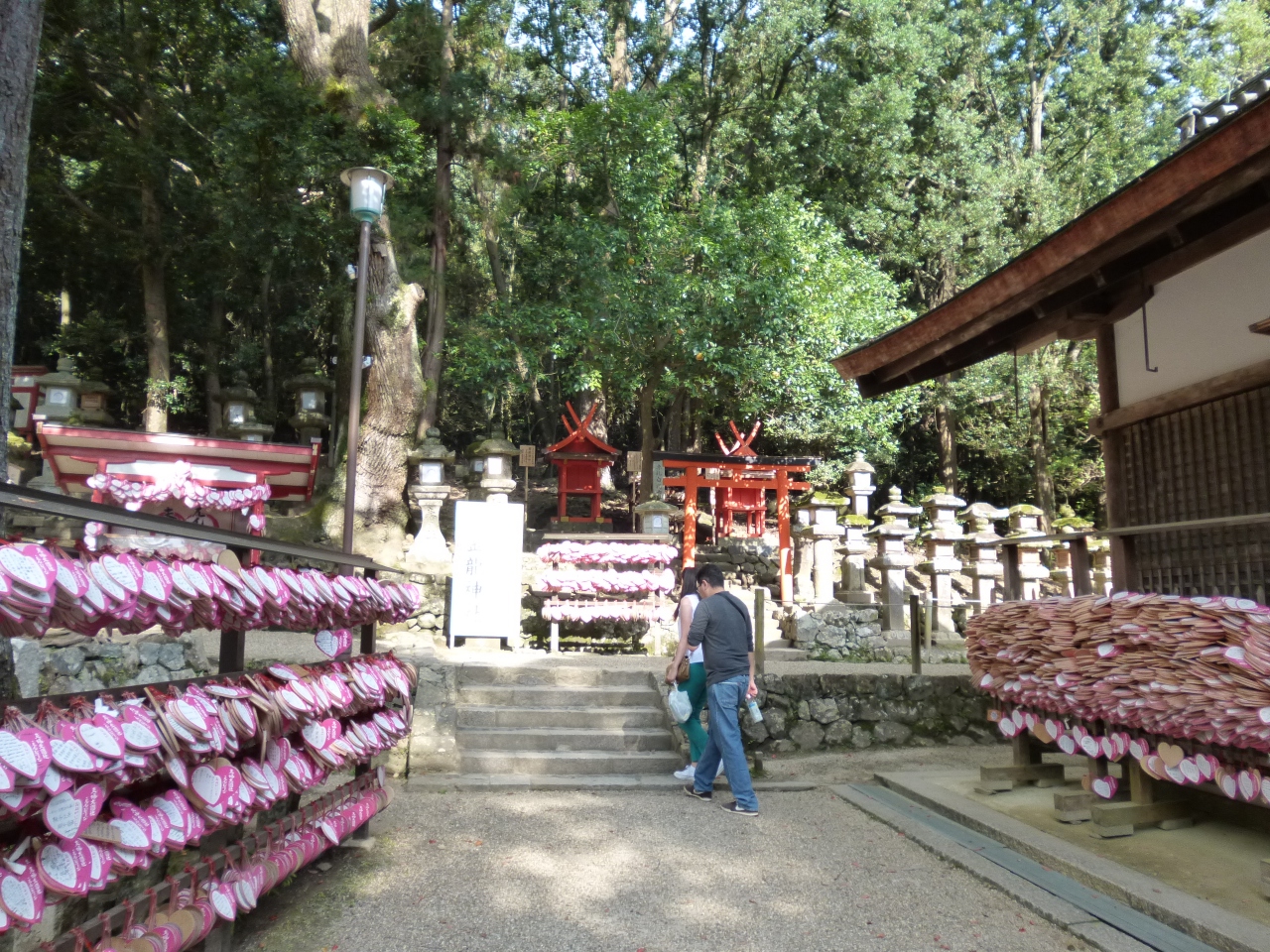 歩いていると、たくさんのハート形の絵馬が飾られている神社がありました。「夫婦大國社」と名前があり、縁結びの神様のようでした。