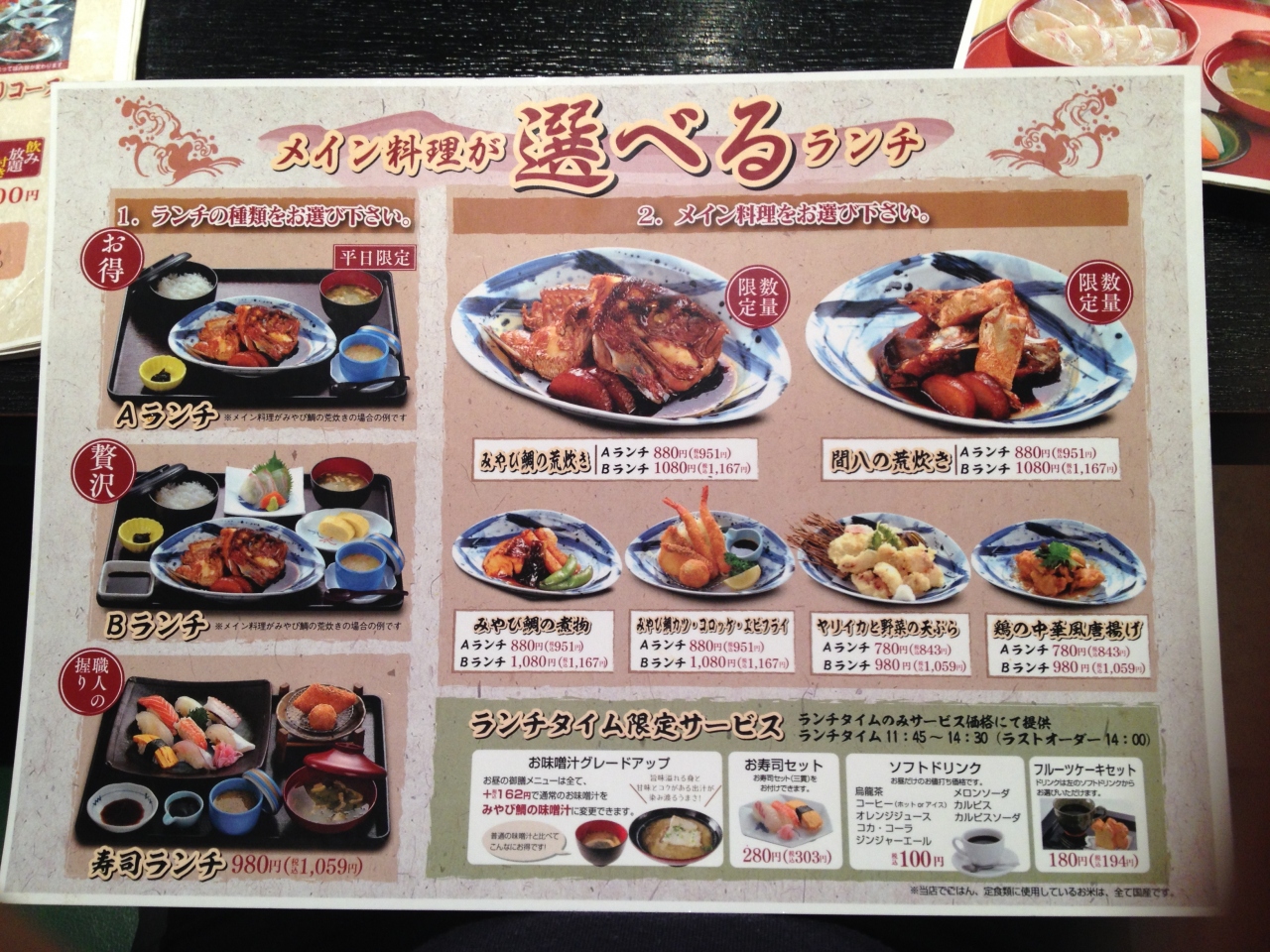 魚料理がほとんどで、丼物や刺身、荒炊きなどのメニューがありました。