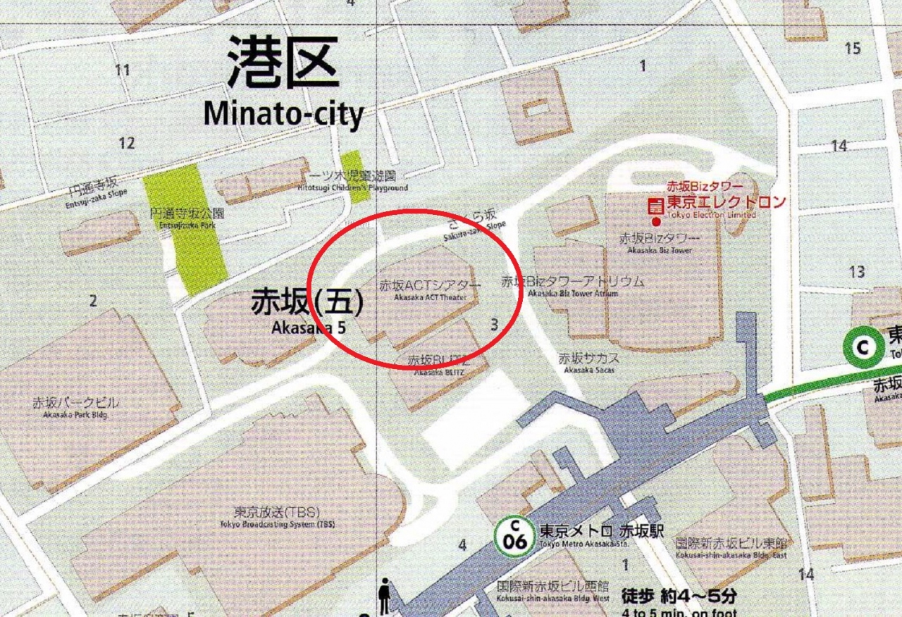 赤坂ACTシアターは、地下鉄千代田線の赤坂駅を降りてすぐ傍にあります。