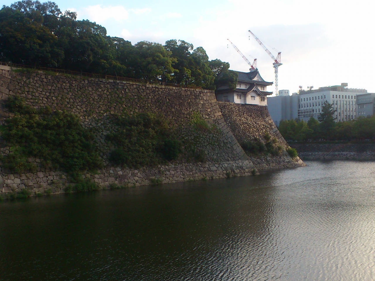 大阪城は蛸石などの巨石が有名で、実際に見てみると迫力が凄かったですが、お堀の石垣も素晴らしいです。石垣の高さが高いだけでなく、それがなだらかなカーブを描いていて、お城の防御に有効なだけでなく、見ていても美しいものです。石垣の角の部分の石の積み方が、とても難しいのだそうです。