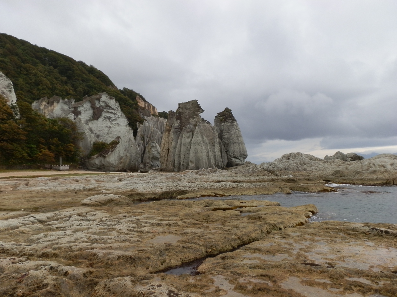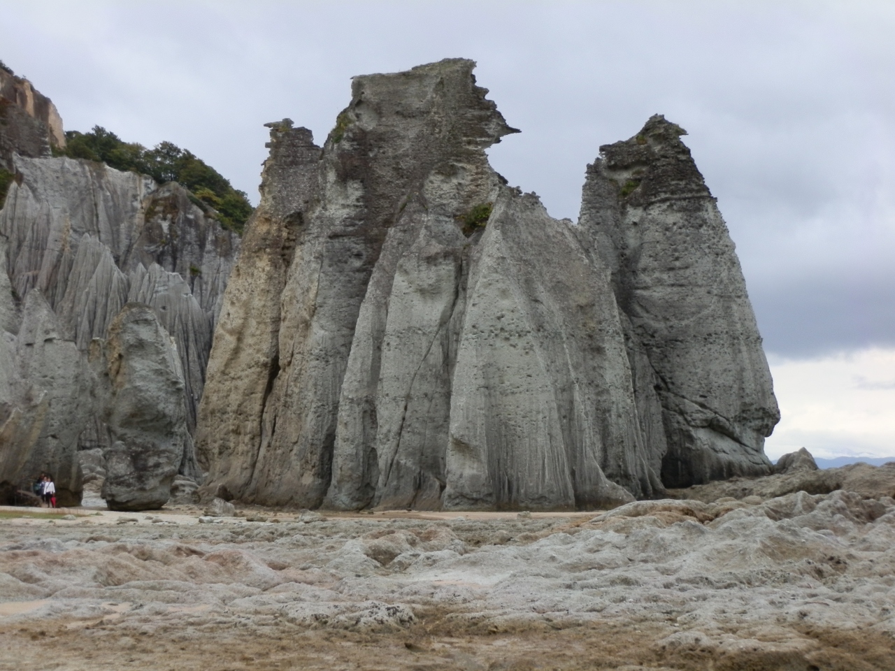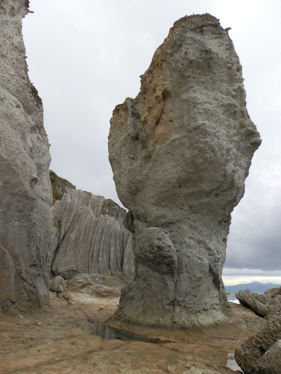 この地の凝灰岩はもろく崩れやすく、 表面が常に浸食されているので植物が根付き難い。 海岸を歩くときは要注意、波しぶきで濡れている為、滑り易い。実際に大怪我した観光客がいる、と説明を受けた。