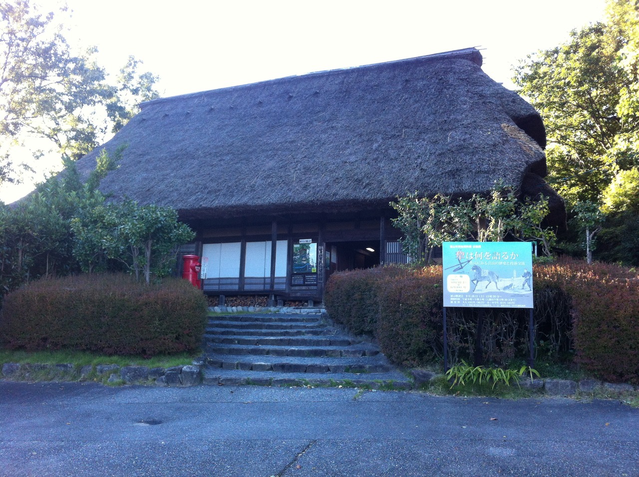 民俗民芸村の入口にある資料館です。富山市旧山田村にあった住宅を一部を改築し移築した建物だそうです。館内には、富山市周辺の衣・食・住に関する用具、祭礼用具、農耕用具などの生活用具・生産用具民俗資料が展示されており、当時の生活を垣間見ることができました。