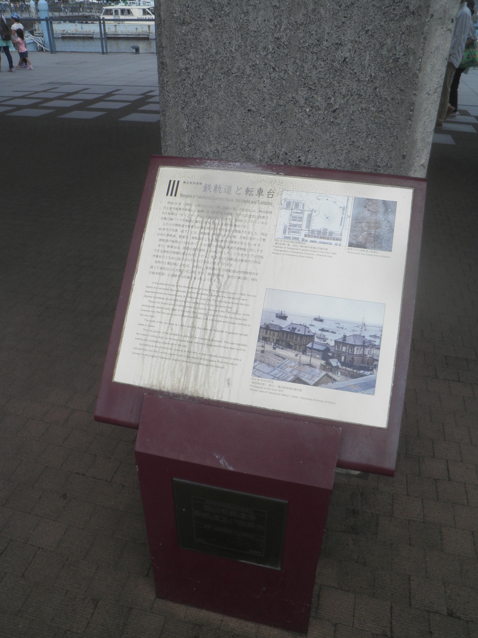 神奈川県庁のある日本大通りから港にいくと、象の鼻パーク内のレンガブロックの路面に、厚いガラスで覆われた遺構があります。ちょっと見づらいし階段にして近くに行けたらいいのにと思いました。 近くに説明板があって、横浜税関の遺構であることがわかりました。