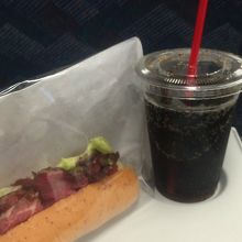新幹線乗車前あまりにも時間がなかったけれど空腹に勝てず一瞬グランスタに行って並んでいなかったこちらでサンドイッチとドリンクを購入しました。ホットドッグ風のサンドイッチの種類はいろいろありましたがとにかく時間がなくて。