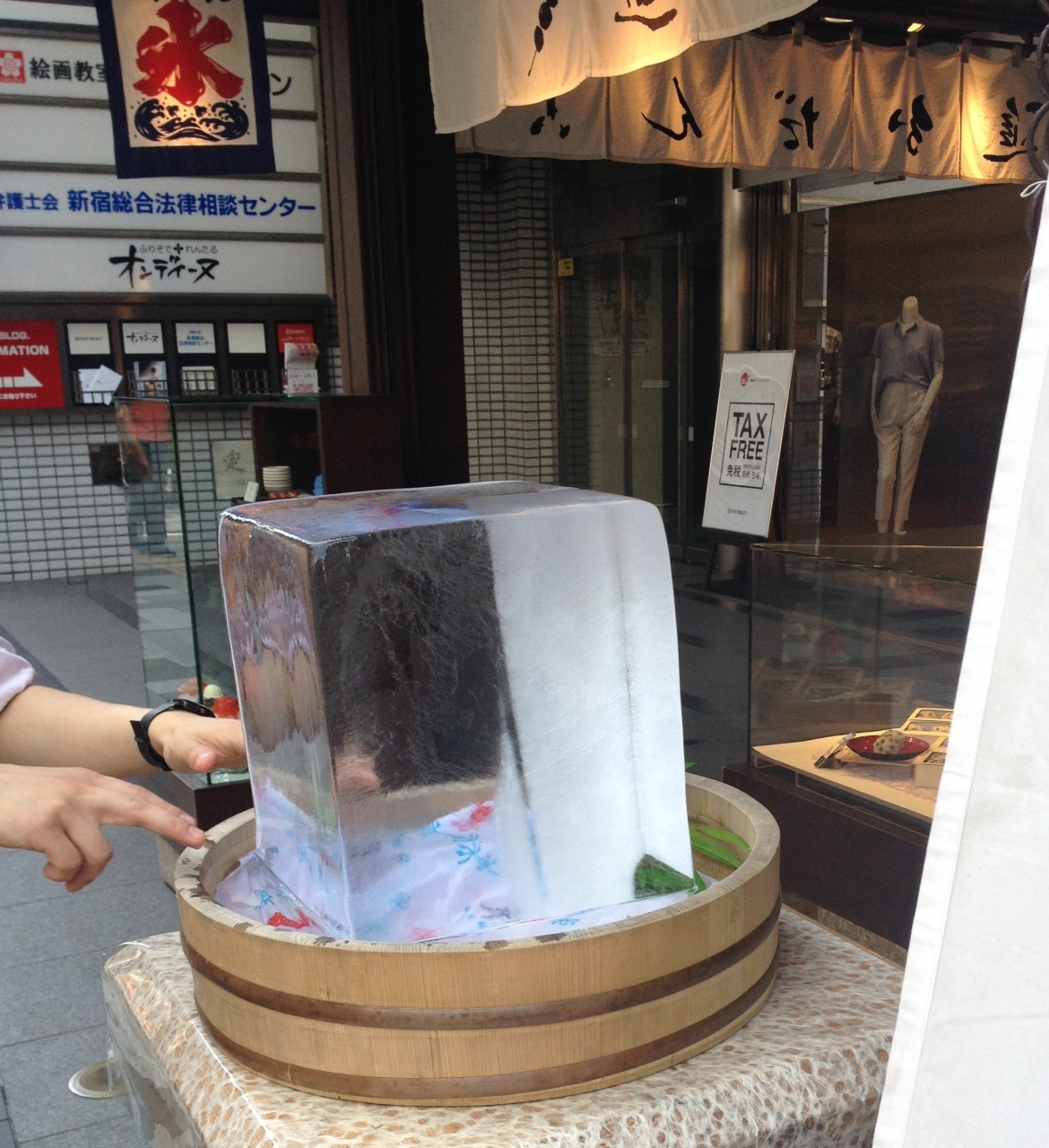 暑い夏の店頭には大きな氷が置かれていてとても涼しげでした。