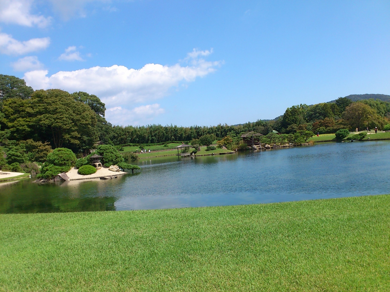 岡山後楽園の真ん中にある大きな池です。岡山後楽園はこの沢の池を中心にして成っている公園で、池泉回遊式の庭園というジャンルの庭園になります。近くには唯心山という丘のように盛り上げた場所があるので、そこへ登って眺めると、沢の池はもとより後楽園全体が見渡すことが出来ます。池には幾つかの小島が浮かんでいて、それがまた良い感じです。