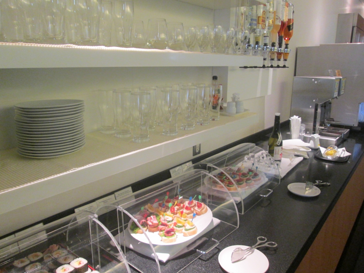 もちろん香港のキャセイパシフィックのラウンジと比べてしまうと、食事の面ではすこしさびしい気もしますが、わたしにとっては、成田のこのラウンジで充分でした。