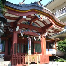 都会の神社らしい感じで、後ろに京急線が走っていますよ。