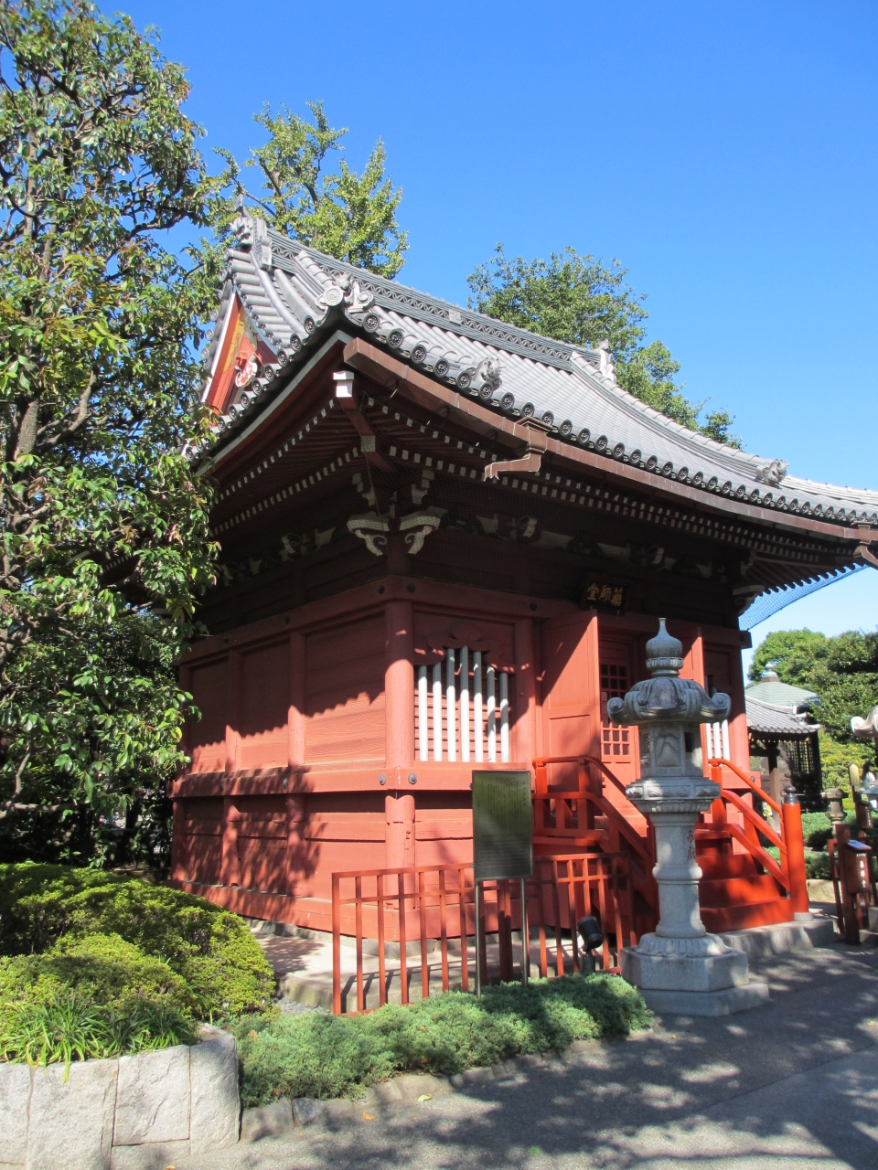 1649年徳川家光建立のお堂で、薬師如来、十二神将、十王が祀られてます。浅草神社社殿と同時代のもので二天門や六角堂に次ぐ古建築です。北薬師と言われてましたが、かたわらに小さな橋が架かっていたことから橋本薬師堂と名付けられたようです。1994年に現在地に移築されました。