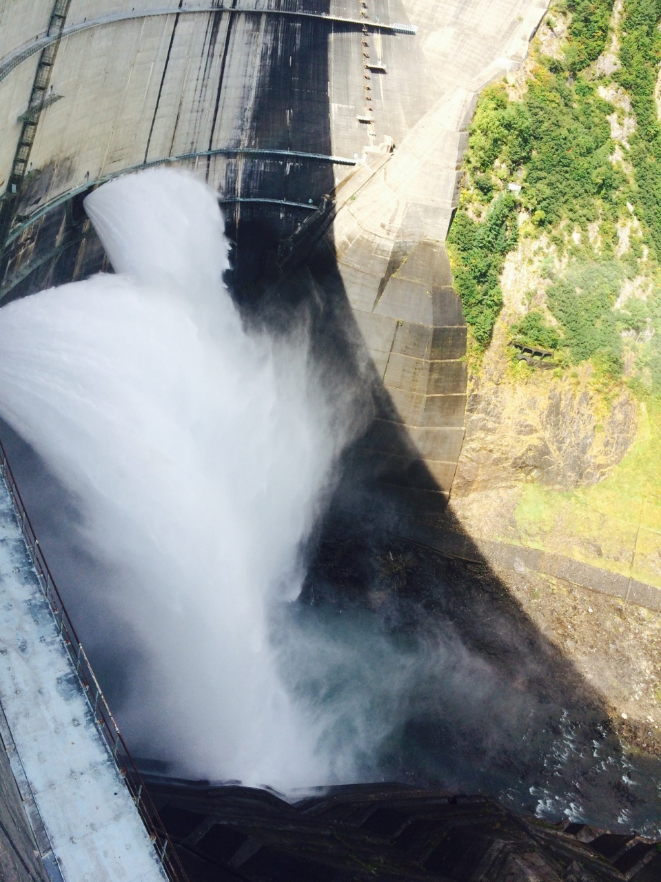 観光放水中のダムを近くから見られ、それはもう大迫力でした。