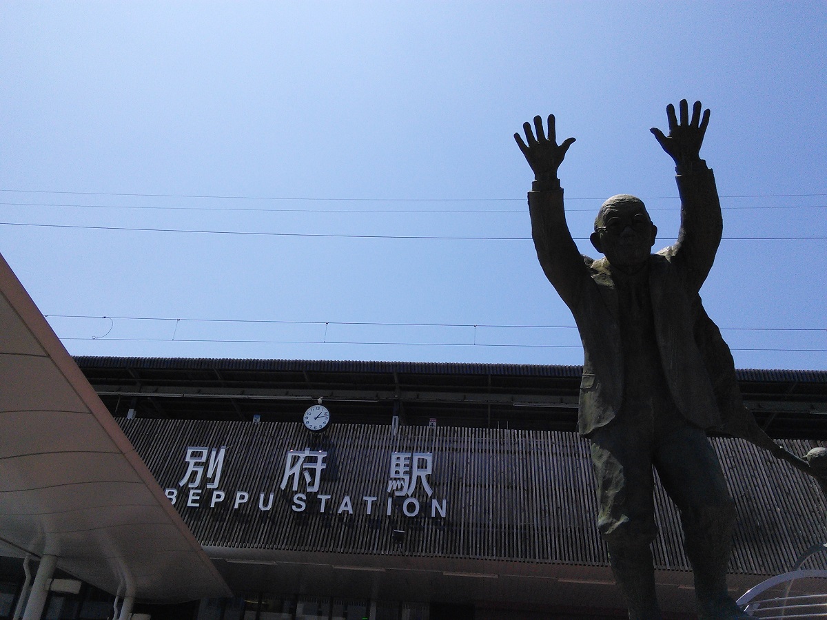 別府駅東口駅前広場にあるへんなオッサンの銅像です。