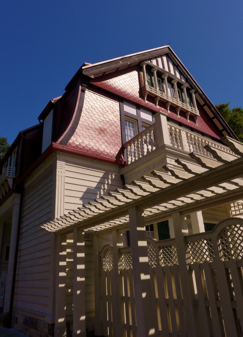 一際目立つ赤い屋根と白壁の3階建て洋館は、かつて新宿区の信濃町に建っていたそうです。