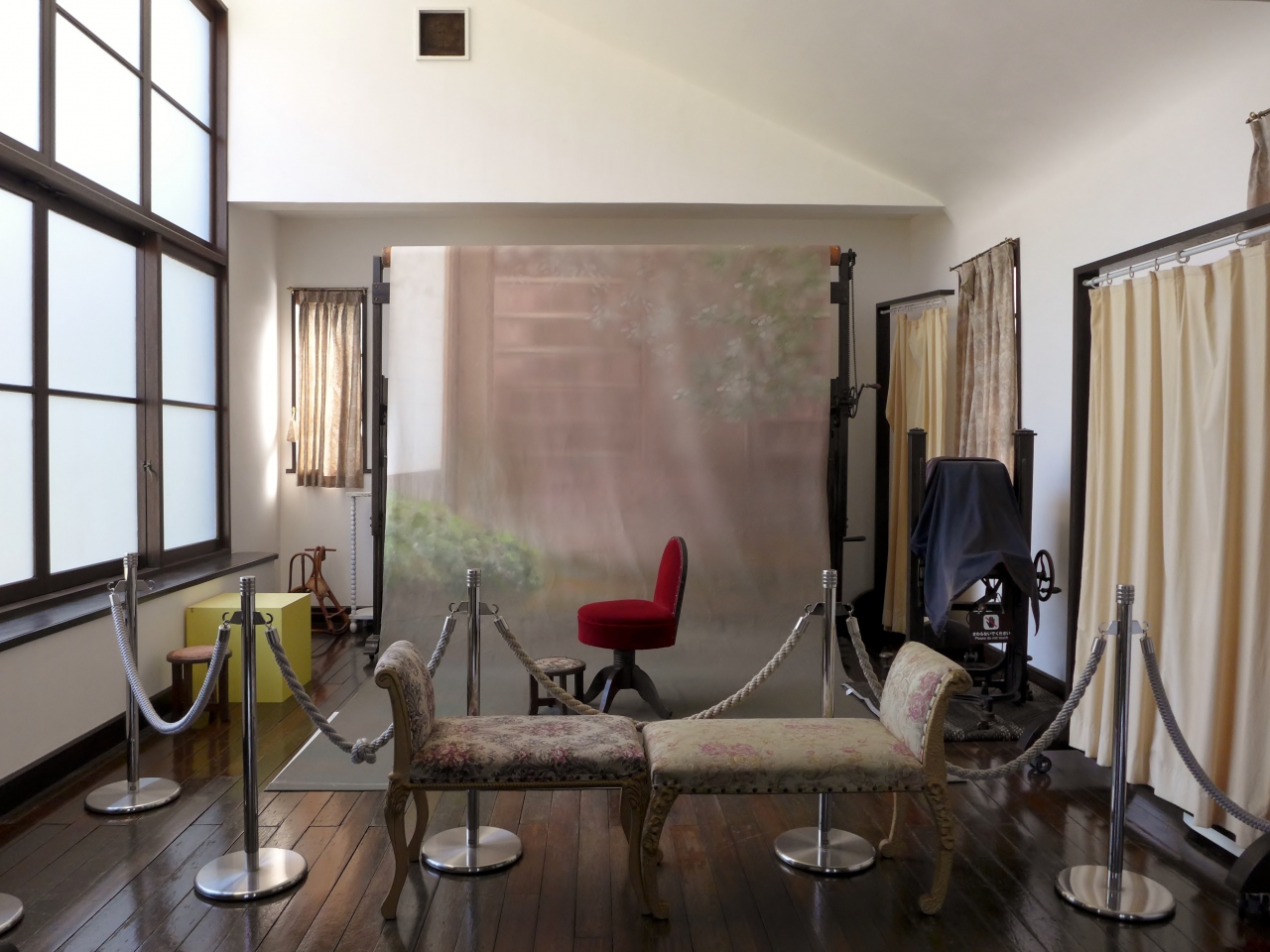 撮影するスタジオ(写場)は2階にあって、北側の大きな窓には擦りガラスがはめられ自然光を取り入れるよう設計されていました。