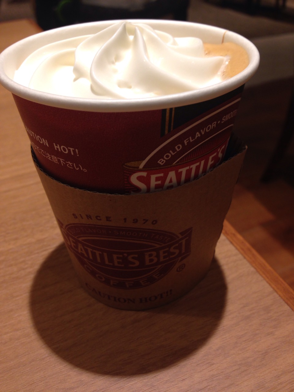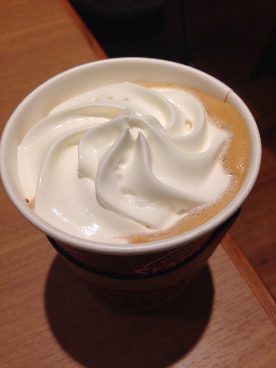 カフェラテ350円に生クリームを50円でトッピングしました。