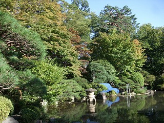 今回行った時は、庭園の樹木はまだ数本しか紅葉していませんでした。11月10日頃が見頃だと、植木職人さんが教えてくれました。