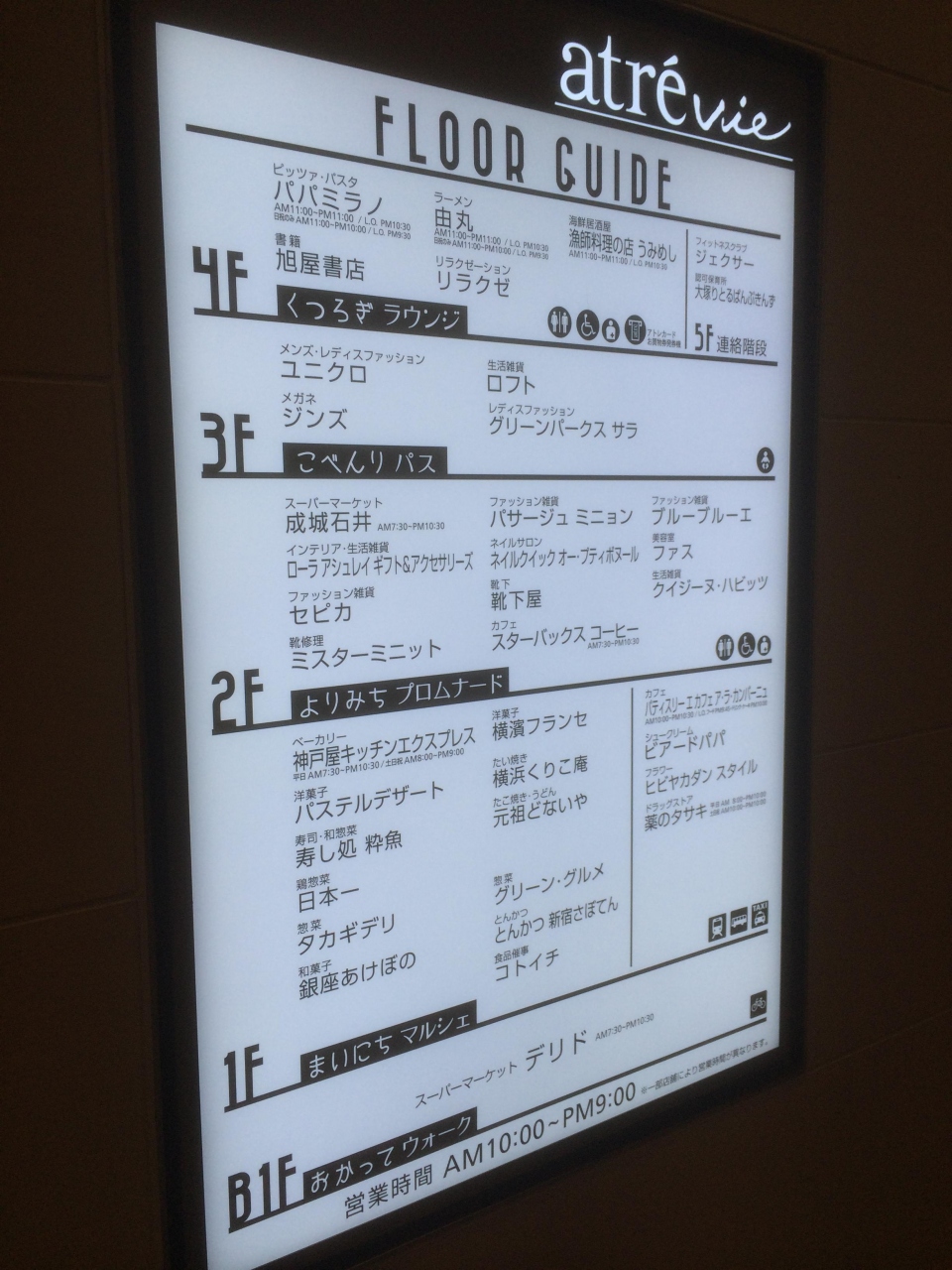 2階に成城石井、3階にユニクロ、4階に旭屋書店と、この三つがそろえば、そんなに生活面で困りません。