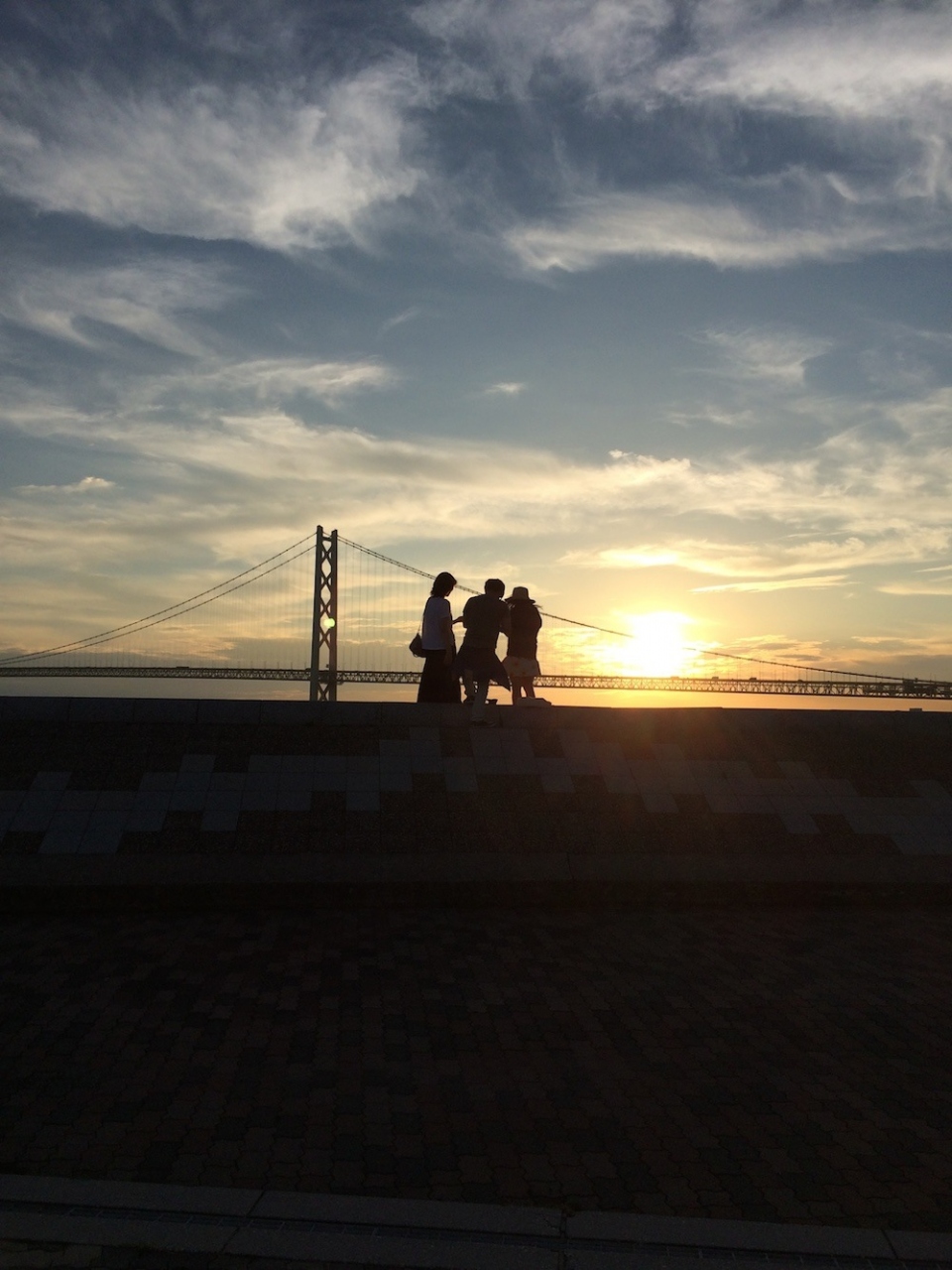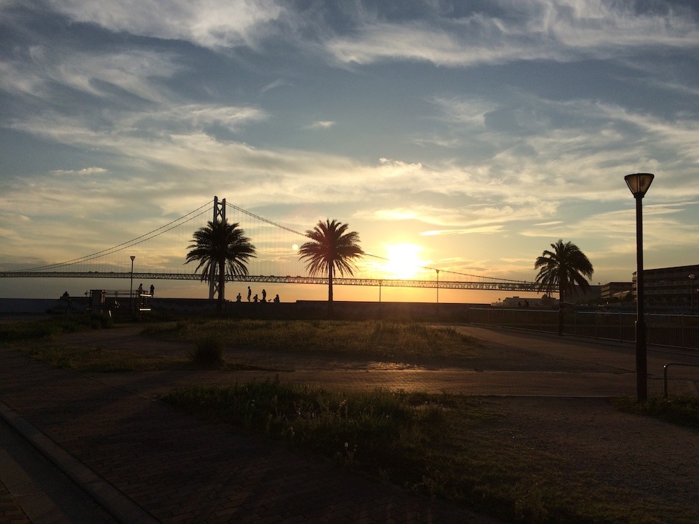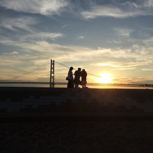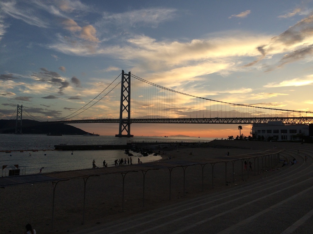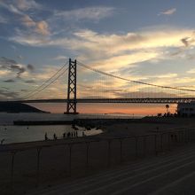 明石海峡大橋とともに、舞子公園の一角をなすビーチです。シーズン中はかなり混雑しましたが、もう、海水浴のシーズンは終わって、また静かな海に戻りました。景色がよく、船が航行するのもよくみえます。夕暮れの美しさもいい場所ですね。