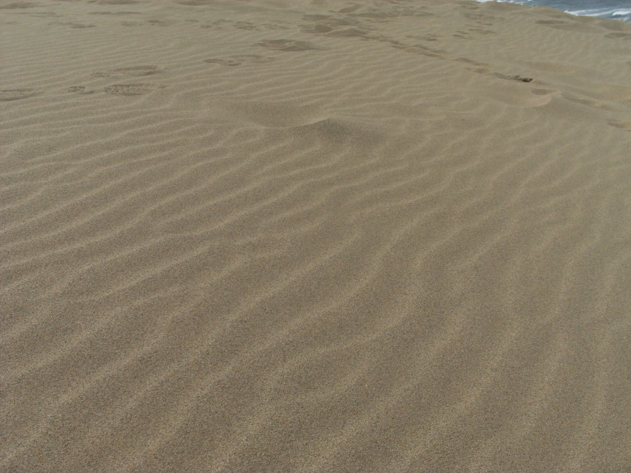 なだらかな丘を想像していましたが、実際はかなりの急傾斜でそびえ立っており、とくに海側は絶壁に近い印象です。ところによって傾斜のゆるいところもあるらしく、海岸に下りている人たちも見かけましたが、自分のいたところからだと、下りたら上がって来れそうもなかったので、下りる気は起きませんでした。日曜で観光客が大勢来ており、人の多いところだと踏み荒らされていまいちきれいに見えませんが、砂丘はとても広いので、人の足跡のついてないところは、いくらでもあります。