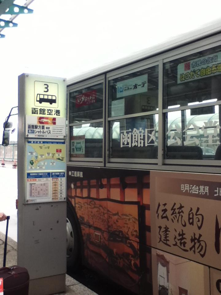 函館空港到着後、出口のすぐ目の前がバス乗り場です。