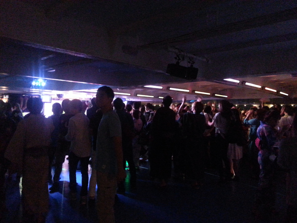 ステージでは浴衣ダンサーズが踊りクラブのように大音響で若者が騒ぎ、あっという間のクルージングでした。