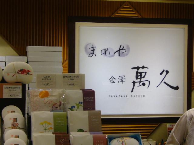 金沢の地元産の原料の大納言小豆を使った和洋菓子店の「まめや金澤萬久」が東京駅構内の中央地下1階に商業施設「GRANSTA(グランスタ)」にあります。店頭にディスプレイされた可愛らしいパッケージがずらりと並んでいるのは豆菓子です。また金のかすてらや有機大豆の炒り豆はちょっとお高めですが人気商品のようです。時節柄の商品もありました。お土産に購入しましたが大変喜ばれました。