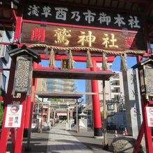 東京メトロ・入谷駅から徒歩10分、国際通り沿いにある神社です。浅草酉の市発祥の神社です。縁起物の熊手を売る「酉の市」で賑わいます。賑やかな神社の正面なのですが、中は静かでこじんまりしていました。浅草七福神の寿老人が祀られて居ます。