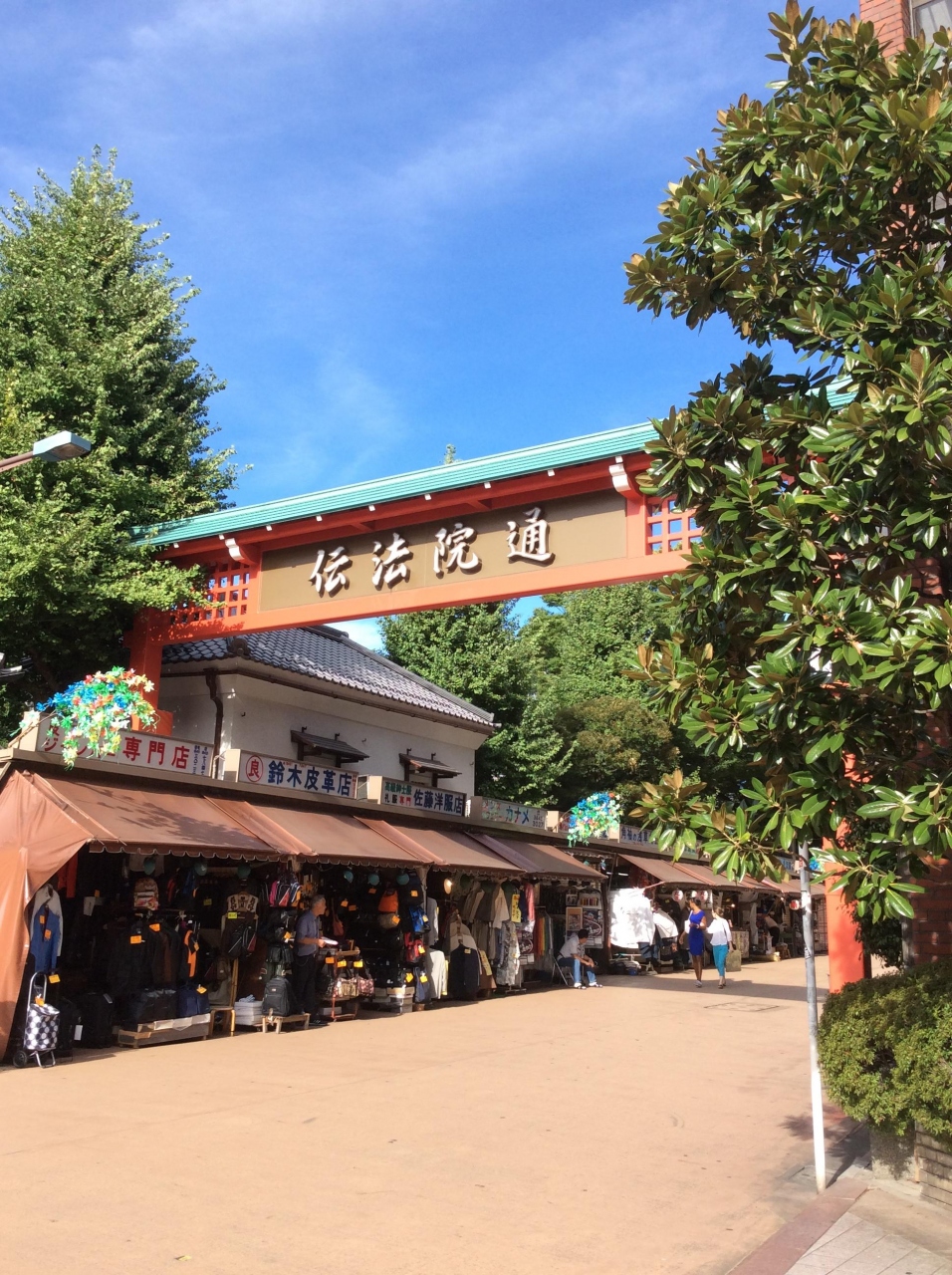 浅草寺住職の居住する本坊の伝法院中心に左右に伸びる通りです。通りの商店街は景観が江戸の街並みのようになっていたり、シャッターは黄門様、土方歳三、坂本龍馬などが描かれていたり、屋根に鼠小僧次郎吉がいたりして面白い通りです。