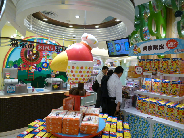 東京駅にはたくさんの施設やお店がありますが、東京駅八重洲口に直結した東京駅一番街を散策。かわいらしい店構えの東京おかしランド。その中に「森永のおかしなおかし屋さん」があります。子供のころ好きだった懐かしいチョコボールのキョロちゃんがいました。東京駅限定のチョコボールやDARSを使ったフォンダンショコラも人気商品。ちょっと大箱に入った東京駅限定のチョコボールは家族へのお土産にしました。美味しいですよ。