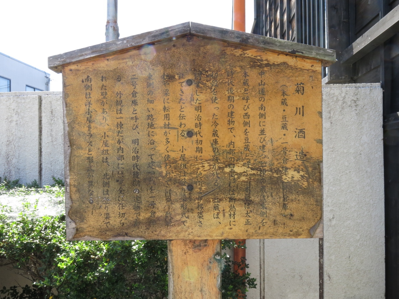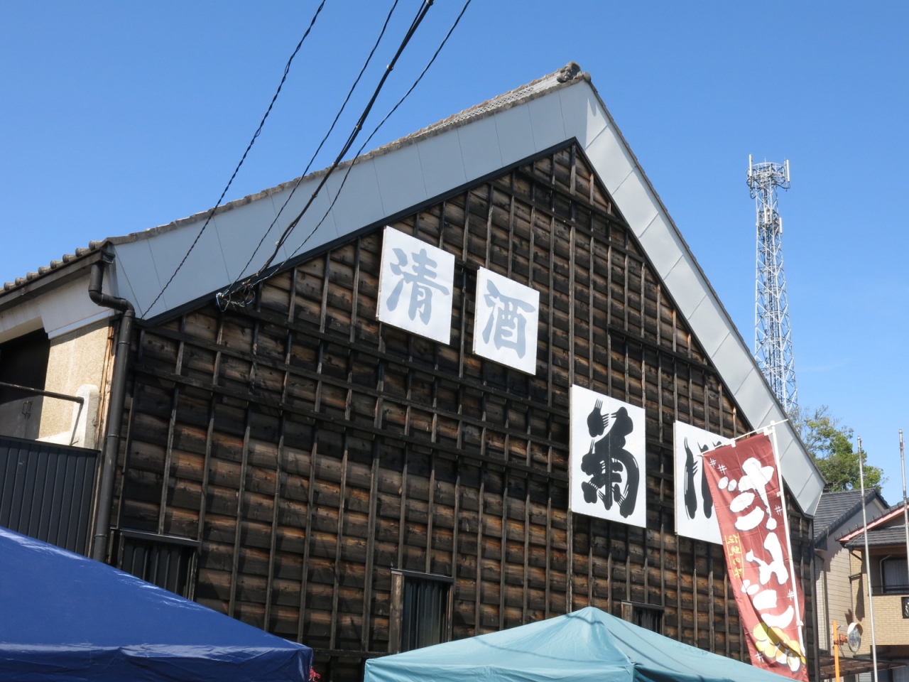 中山道鵜沼宿の街並みに溶け込むように大きな黒い酒蔵がありました。”菊川酒造”と大きく書かれた看板もいい感じです。蔵の脇には「有形文化財」の銘板も煌めいていていました。当日はウォーキングイベントがあったようで、蔵前の広場では、いろんなお店が出ていました。(お酒の試飲もありました)