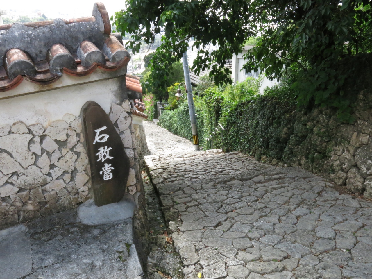 いい雰囲気の石畳の通りです。平日でしたので、人も少なくゆっくり散策できました。作られたのは、尚真王の時代(1477年~1526年)とか。今でも「道」として、立派に機能しています。通りには「ロケに使われた民家(何のロケか忘れました)」もありましたよ。