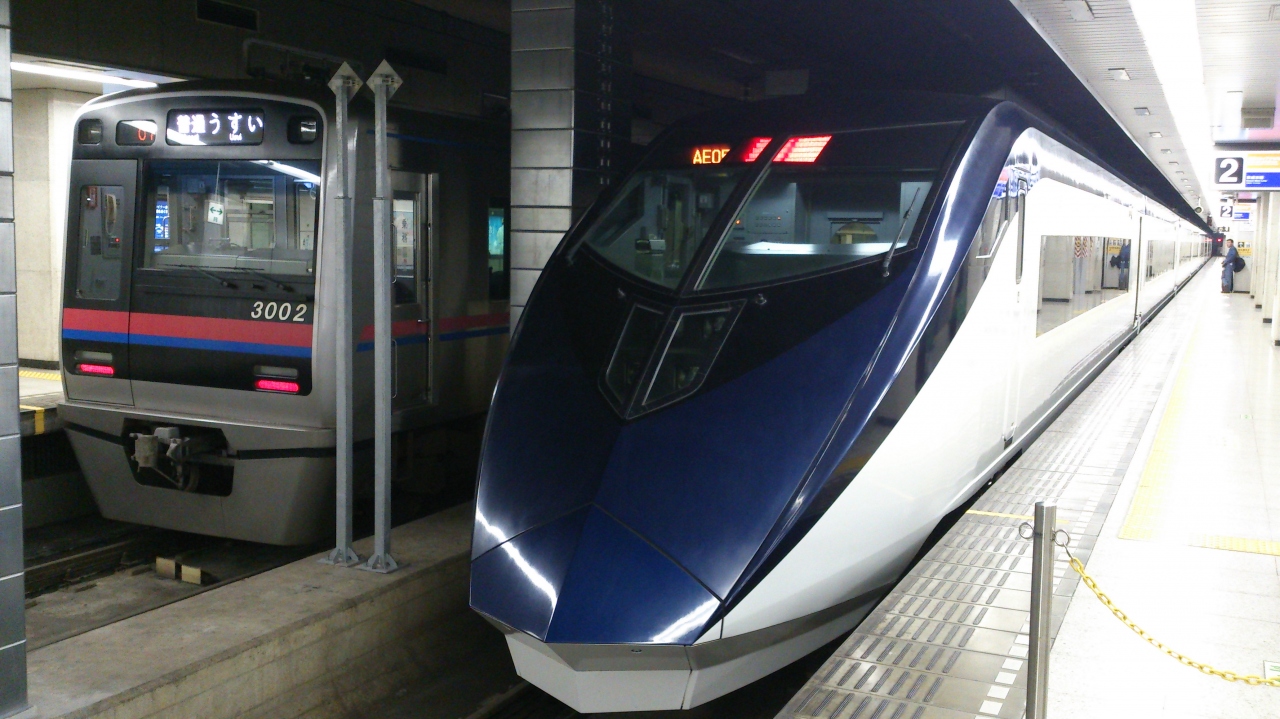 都内から成田空港までを最速で結ぶルート。成田空港アクセスという北総線を走るので、時速160キロの高速特急。日暮里から成田空港まで最速で36分。結果的に遠回りになる成田エキスプレスと比べると、東京で6分(しかも成田エキスプレスは、総武快速線ホームなので、地下の深いところから発着)、新宿で20分、池袋で35分も差がついている。山本寛斎デザインの車輌は、登場したときはかなりのインパクトでしたが、今は京成電車の一員として馴染んでいます。高速で走るので、さすがのアクセス線でも若干の揺れが気になりますが、遠くて行きにくい、飛行機に乗っているよりも時間がかかる、といった成田空港の不便の象徴てもあった成田空港へのアクセスが、この列車によって大きく改善されたことは事実。JRどの乗り換えは、JR駅から若干離れている京成上野よりも日暮里が便利。京成側は勿論、JR側もエスカレーター、エレベーターともに完備されており、苦痛なく乗り換えが行えるのも魅力。日暮里駅のライナー券売場はいつも混雑しているので、ネット予約が便利。ギリギリまで特急券が購入できます。